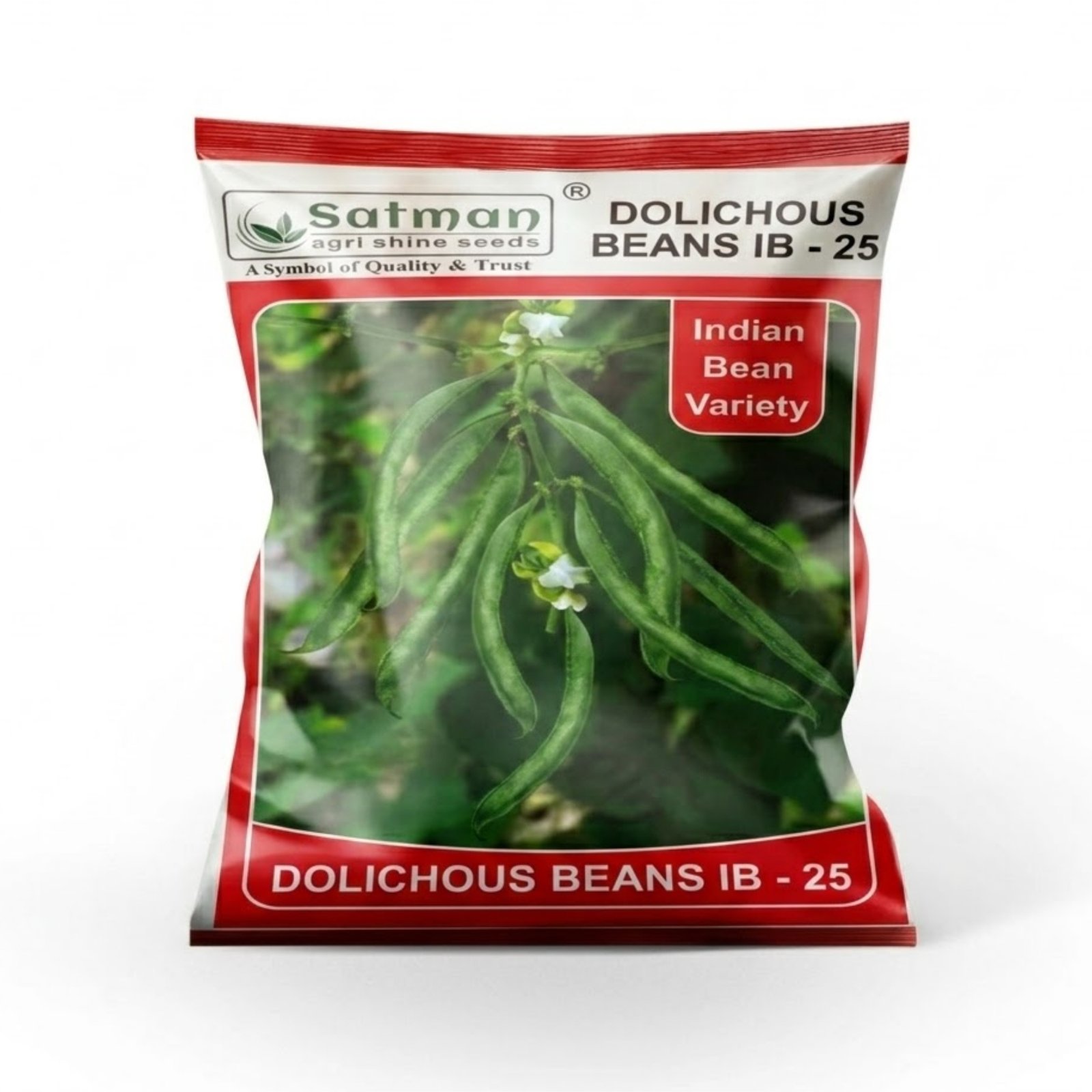 Satman Dolichous Beans IB-25 is a premium-quality Indian bean variety known for its high productivity and superior pod quality. The plants are vigorous climbers that produce long, tender, and attractive green pods, making them highly desirable in the market.
